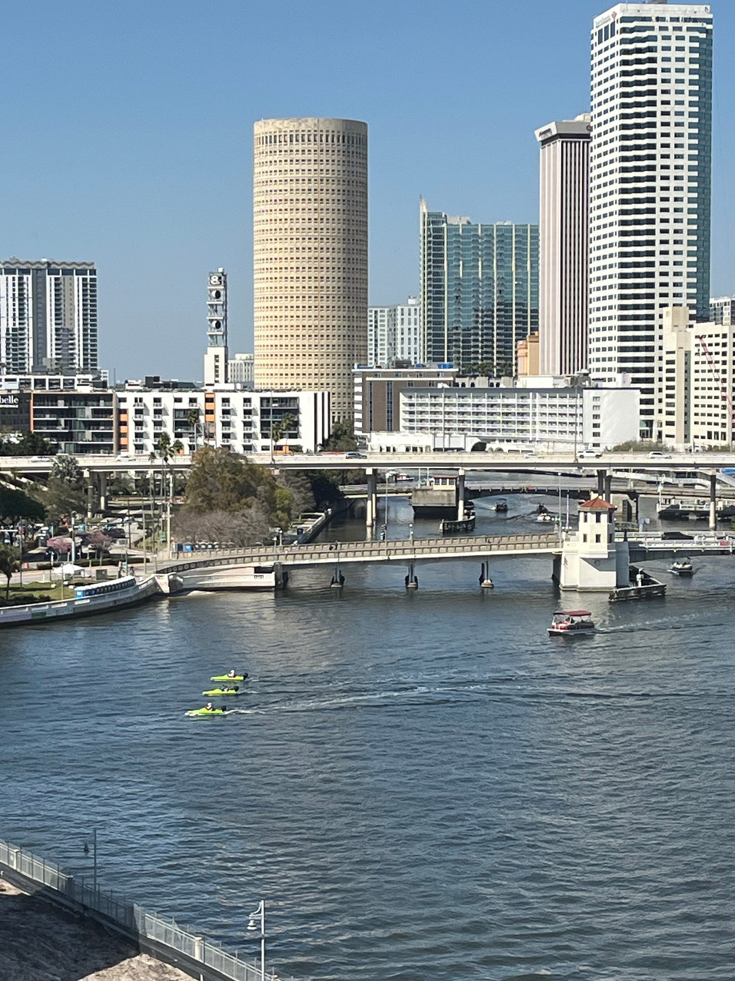 But the best part – and I’m reaching for positive thoughts- is a beautiful view from a large window. I’ve watched swimmers, crewers, jet skis, and party boats. I watched a 5 and 8K race happening on the street below. Construction is occurring in the building directly in front of me; soon, it will be torn down, and a brand new Transplant Center will be built – with 140 beds!